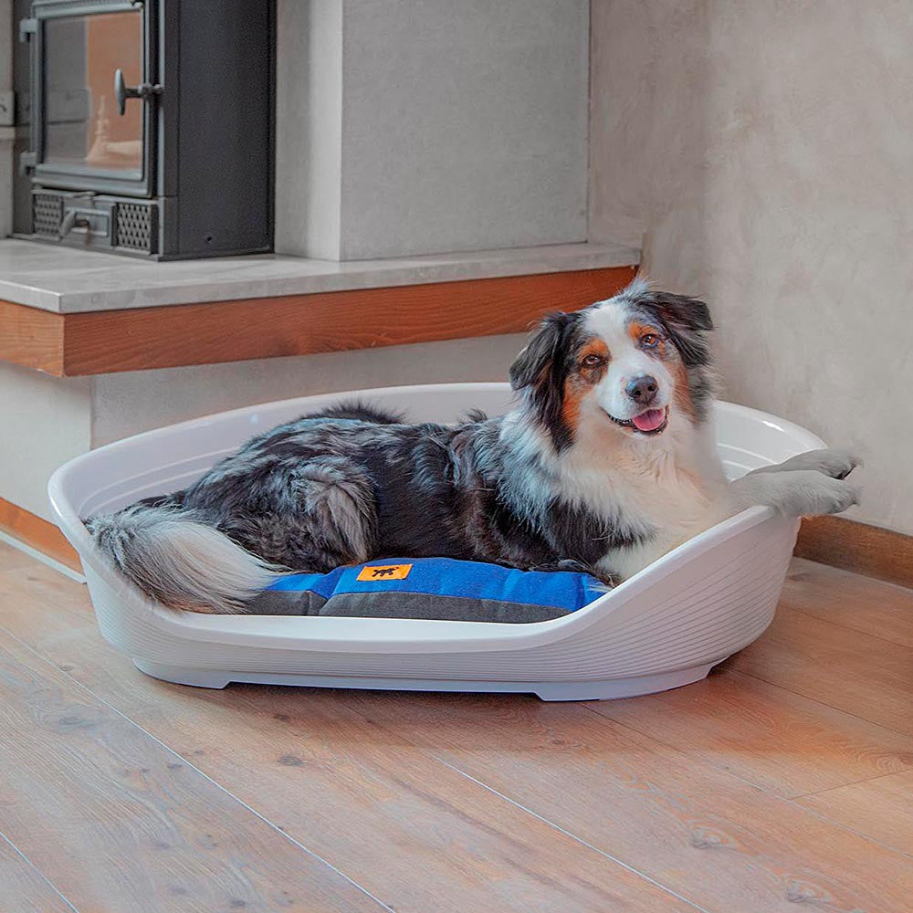 As camas plásticas Siesta Deluxe estão disponíveis em seis tamanhos, para cães de todos os tamanhos. Siesta Deluxe 2, 4, 6 e 8 são também particularmente adequados para gatos. Você pode adicionar uma almofada para cães, adequada para todas as estações, da linha Relax, em tecido de algodão ou de dupla face com um lado em algodão e outro em pelúcia quente.