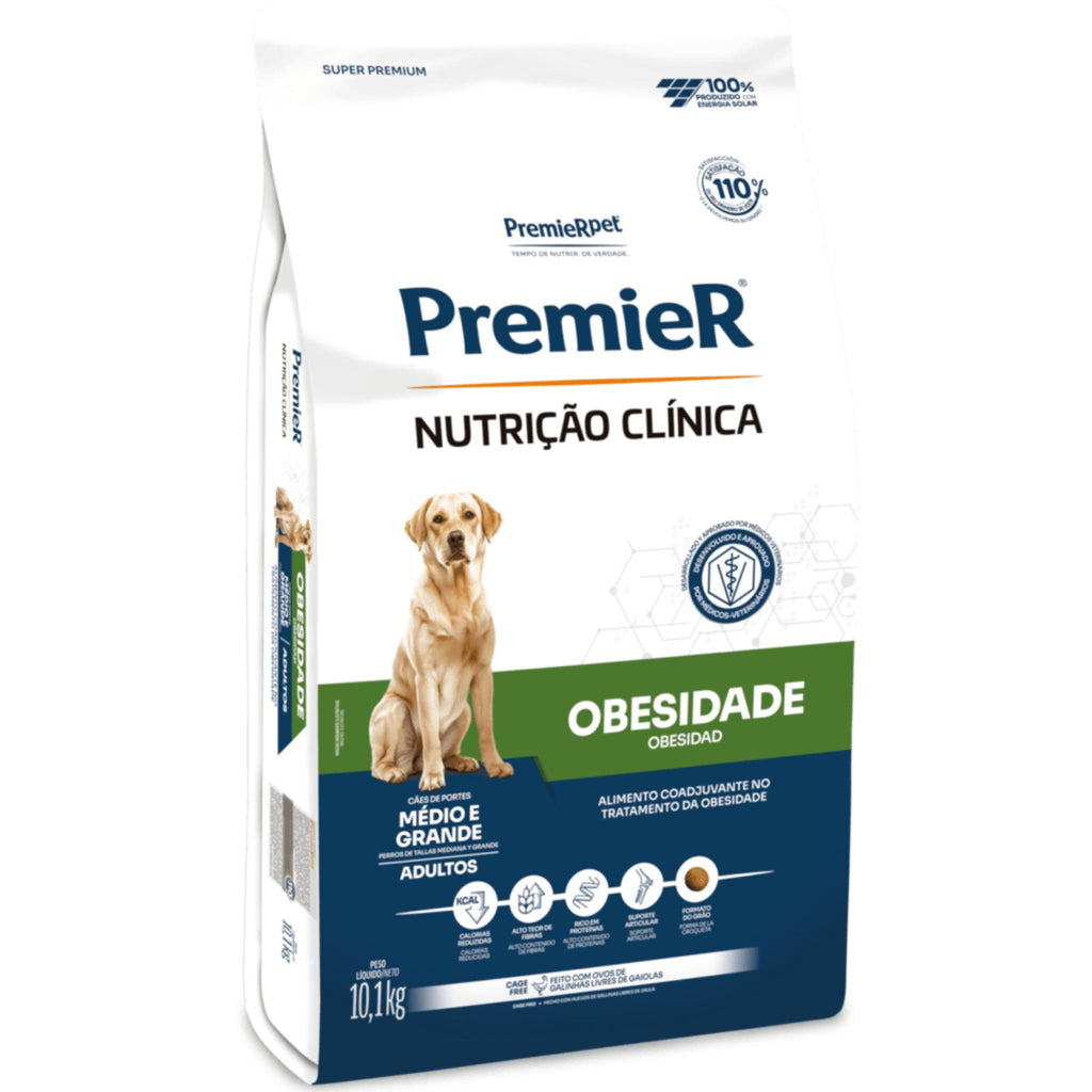 A Ração Premier Nutrição Clínica Obesidade para Cães Adultos Médio e Grande Porte é um alimento auxiliar ao tratamento da obesidade em cães adultos de médio ou grande porte. Além do tratamento prescrito pelo médico veterinário, a alteração na alimentação é fator primordial para o tratamento da obesidade. Os objetivos da dieta são: promover perda de peso efetiva e saudável, com Manutenção de massa magra e suporte articular. Para obesidade, este alimento deve ser utilizado sob orientação de um profissional, até que o animal atinja o peso ideal.