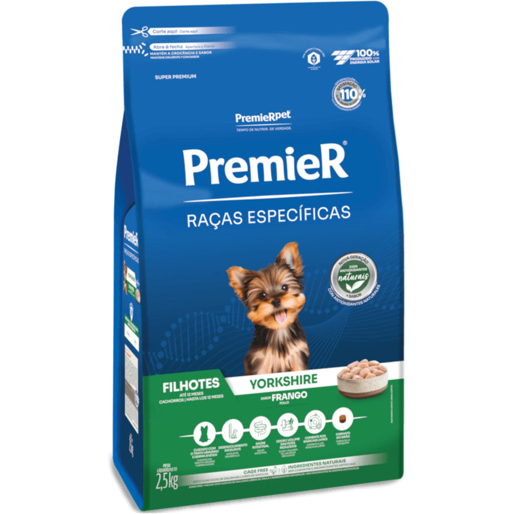 Desenvolvida com ingredientes nobres e alta tecnologia, Premier Raças Específicas oferece benefícios exclusivos que visam minimizar os principais problemas de saúde das raças e auxiliar para o pleno desenvolvimento de suas características típicas desejáveis. A Ração Premier Raças Específicas Yorkshire Filhotes foi formulada a partir deste conceito e oferece tudo o que esta raça precisa para manter sua saúde e beleza. Oferece ainda redução do volume e odor de fezes minimizando possíveis inconvenientes de uma convivência tão próxima entre os cães e seus proprietários.
